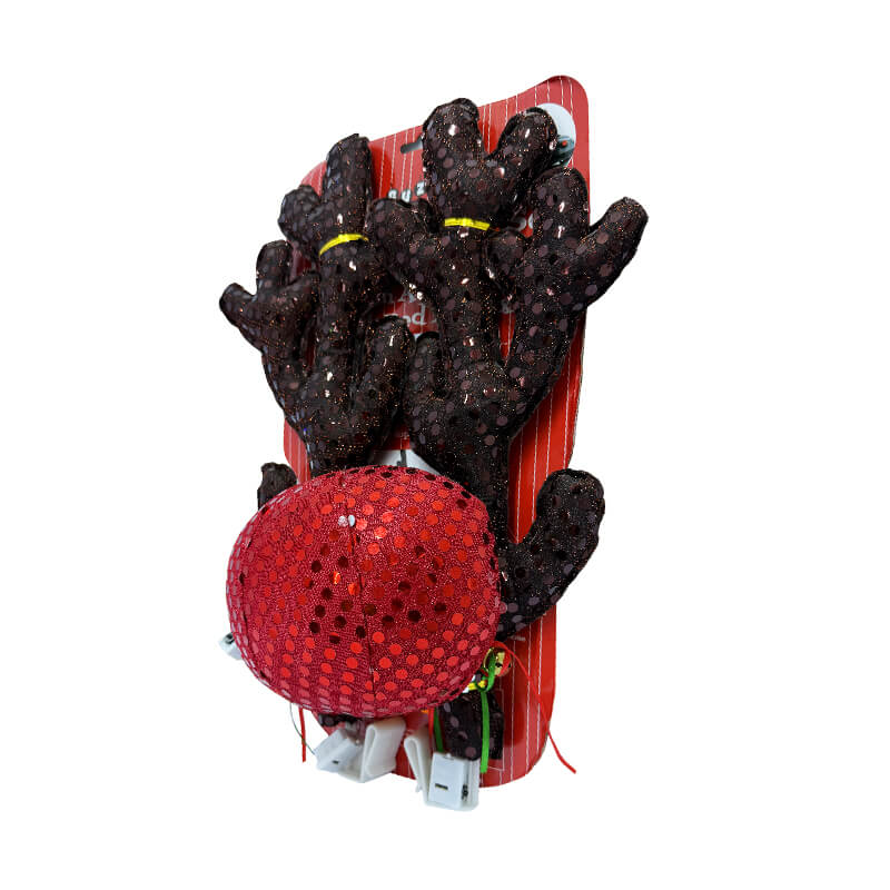 Este adorable adorno decorativo captura la magia festiva con su característica nariz roja brillante y su expresión amigable.
